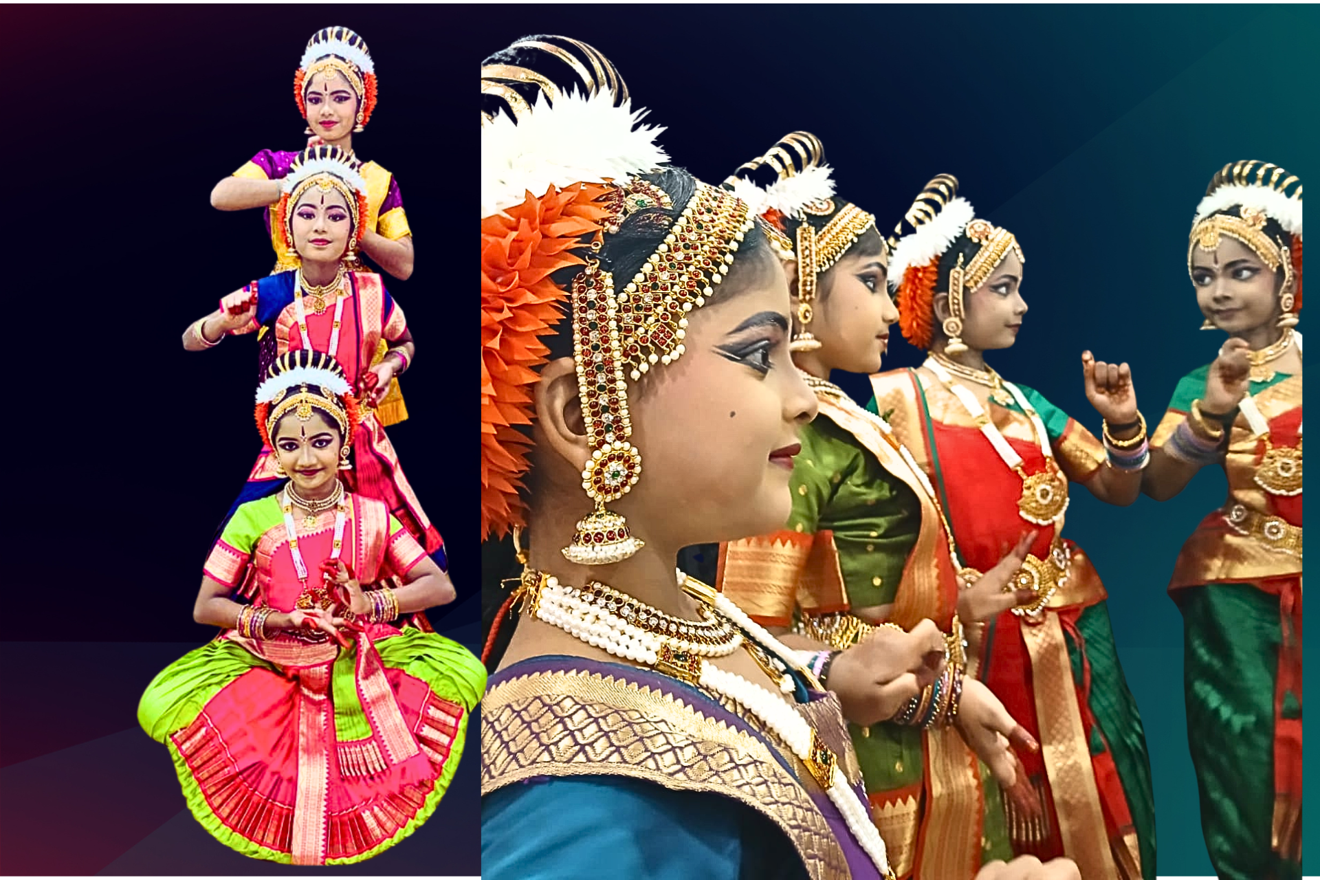 Our Kuchipudi dance classes follow a well-structured curriculum covering foundational techniques, rhythm training, expressive storytelling, and performance skills. Each student progresses step-by-step under experienced instructors who focus on precision, grace, and artistic development.